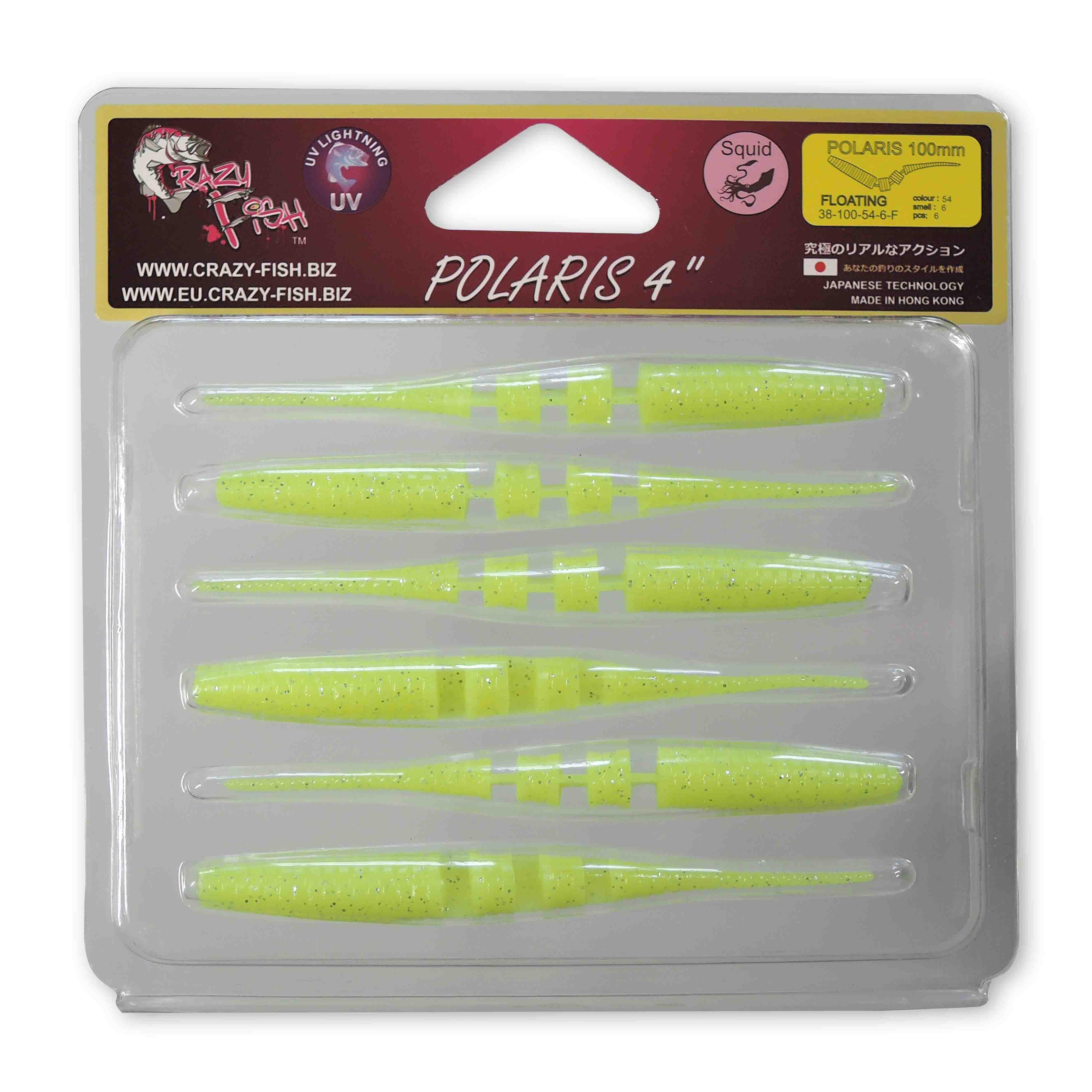 Crazy Fish Polaris 4" — одна из лучших пассивных приманок для ловли крупного окуня, щуки и судака. Благодаря геометрии тела приманки в воде она совершает невероятно реалистичные движения, напоминающие насекомое, личинку или червя. Достаточно легкого импульса кончиком спиннинга и Polaris оживает. Её игра соблазняет практически всех наших рыб, как хищных так и мирных! Приманку можно использовать как на классическом монтаже с джиг-головкой, так и на шарнире или отводном поводке. Эта модификация сделана из плавающей резины.