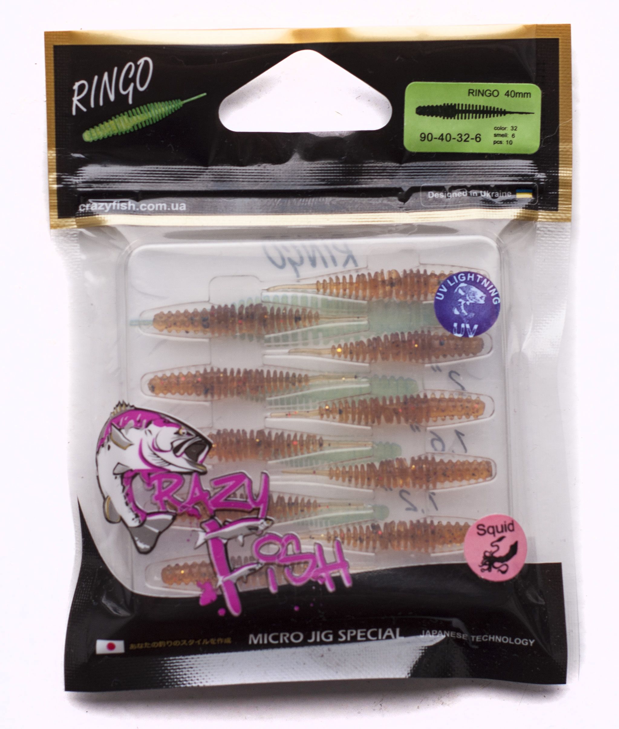 Ringo 1.6" имеет длину 40 мм, подойдет для микроджига и отлично ловит окуней. Советуем монтировать на одинарный крючок №10 или Offset Joint Hook №10