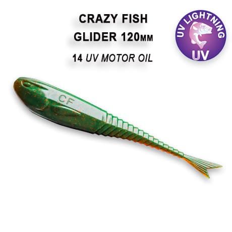 Crazy fish Glider — слаг, который своей формой напоминает естественный объект охоты хищника — живую рыбку. Длина силиконовой приманки — 12 см, вес — 7.2 грамма, в пачке 6 штук.