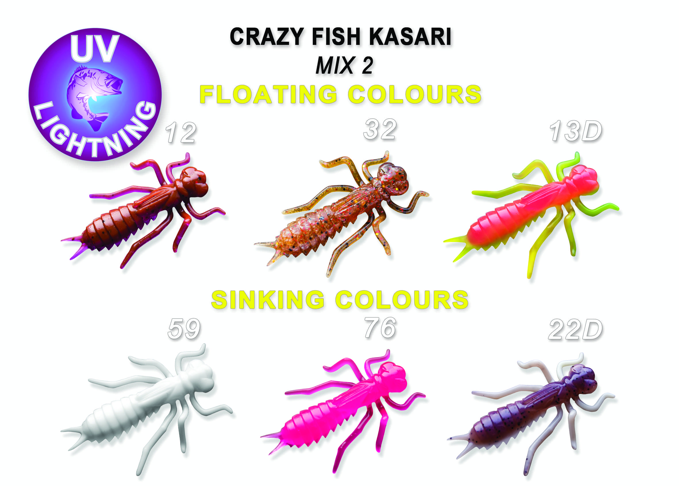 Kasari содержат новый аттрактант Crazy Fish — кальмар и креветка. Это сочетание двух наших самых популярных аттрактантов, поэтому приманки лучше привлекают осторожного и пассивного хищника. В тонущем варианте исполнения приманки содержат 21% соли, что придает им большей съедобности и веса.