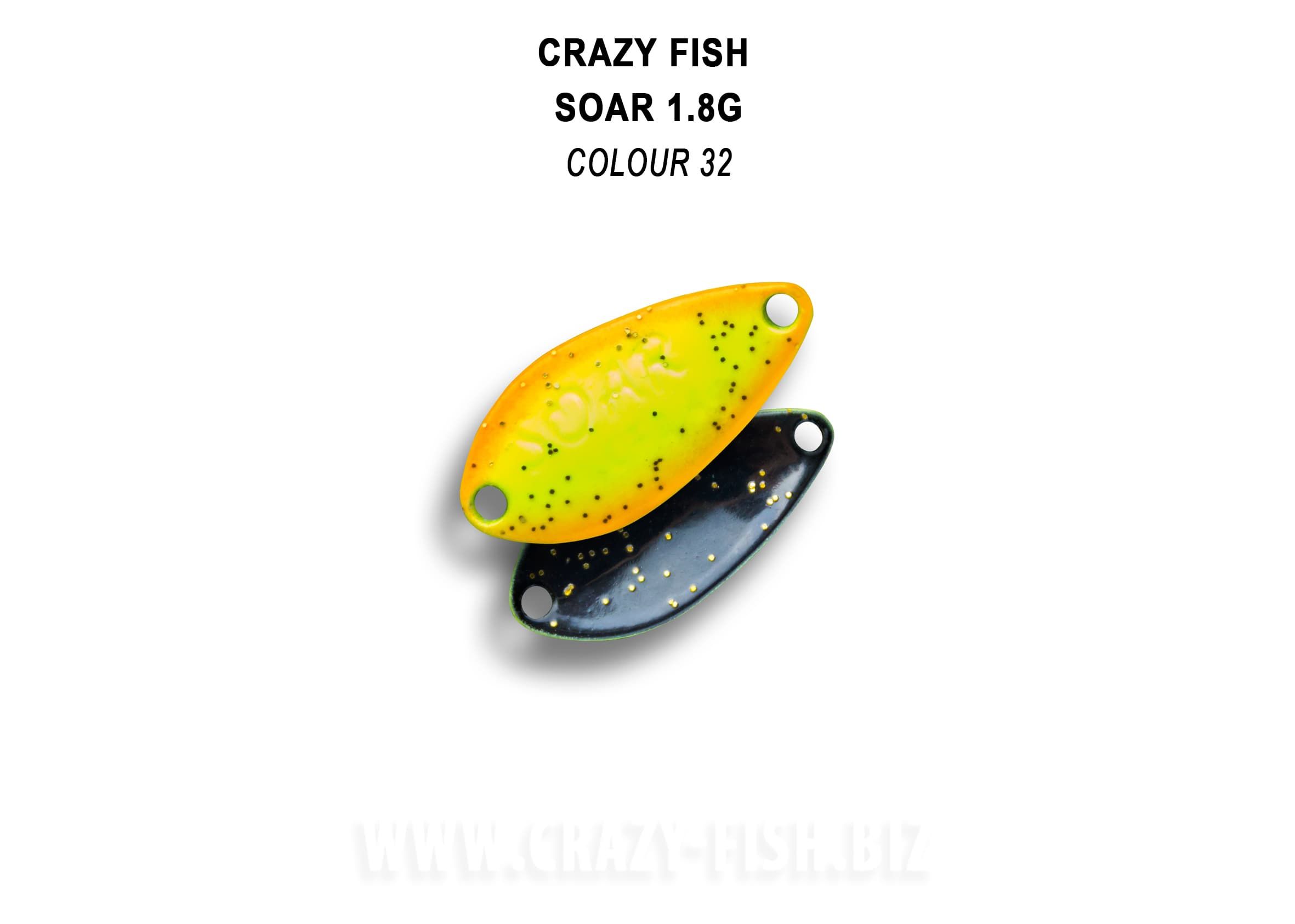 Crazy Fish SOAR весом 1.8 грамма — лёгкая блесна для ловли форели, голавля, окуня и небольшого жереха в прудах и озёрах на средних дистанциях .На прудах она эффективна в верхних и средних слоях воды. На реках используйте SOAR на малом и среднем течении, а также для облова ям и обраток. Главное отличие от веса 2.2 — более эффективная работа в верхних слоях, а также на мелких речках и ручьях. Хоть вес блесны и небольшой, но благодаря ее компактности на токном шнуре SOAR будет лететь далеко.