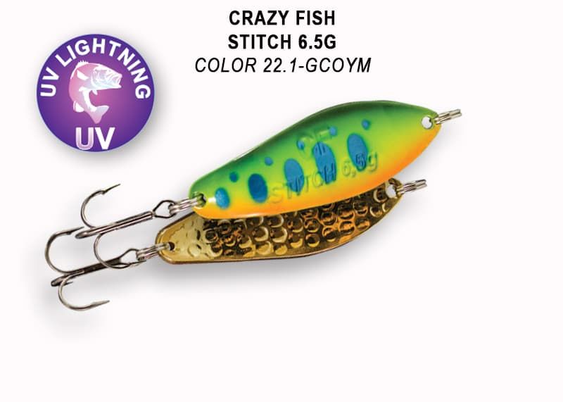 Stitch — блесна весом 6.5 грамм, созданная для ловли щуки. Замысловатый изгиб даёт ей прекрасную размашистую игру, которую и предпочитает эта хищница. Также нужно отметить, что эта блесна одна из наиболее дальнобойных и подходит как раз для прочёсывания дальних горизонтов на наличие активной щуки. Поверхность блесны рифленая, имитирующая блики чешуи. Также приманка хорошо держит струю и позволяет применять все тонкости проводок колебалок, такие как паузы, рывки и джиговые проводки.