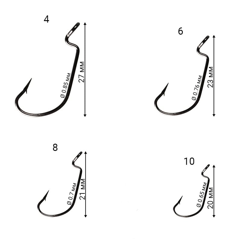 Офсетный крючок DN Offset Joint Hook будет идеальным для ловли в закоряженных и заросших водной растительностью водоемахБольшой изгиб увеличивает засекаемость хищника, приманка легче освобождается от крючка и надежно засекает хищника.