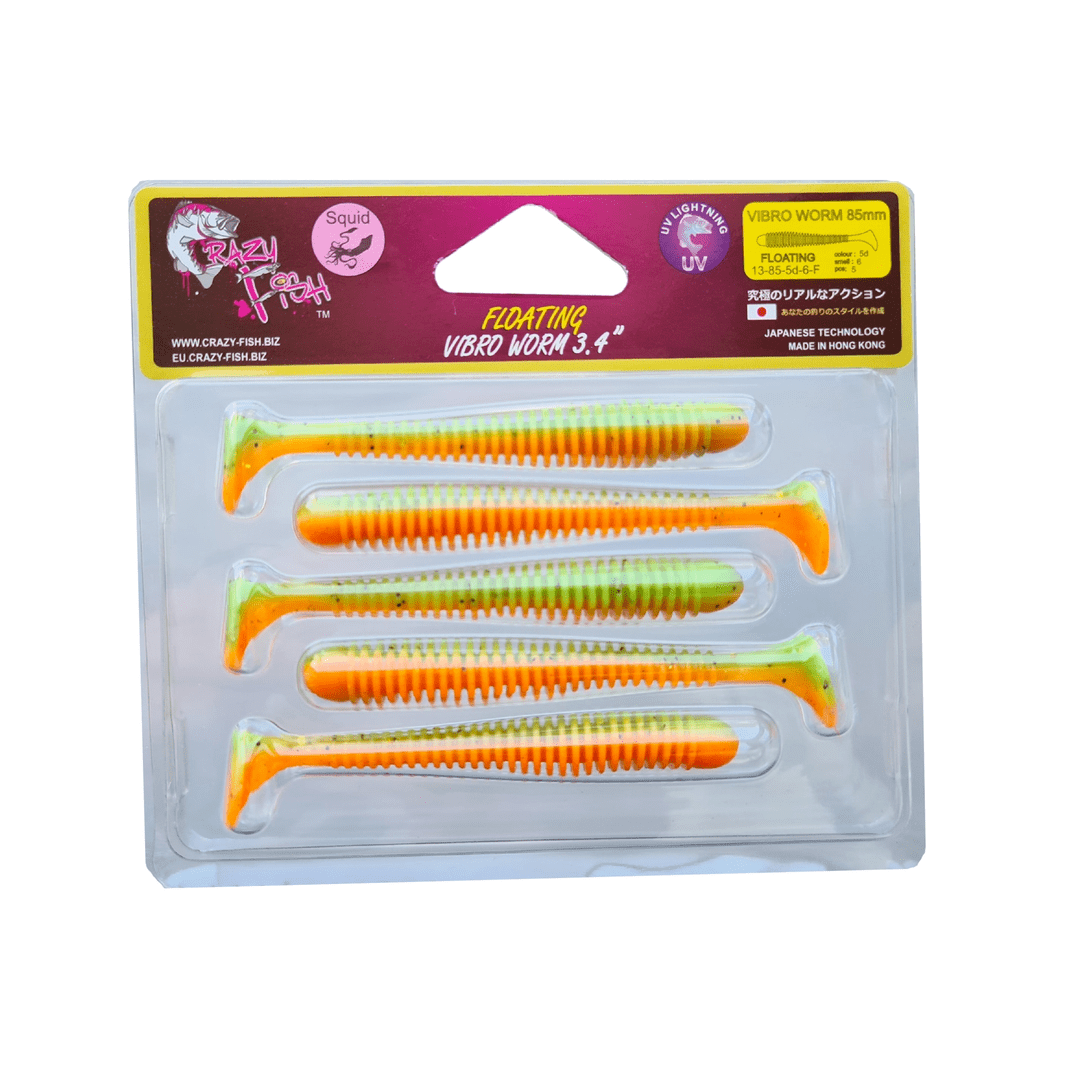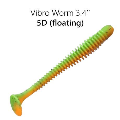 Плавающий Vibro Worm 3.4" — виброхвост длиной 8.5 см самой популярной среди рыбаков и рыб формы. На него хорошо ловятся окунь, щука и судак. Отличие от младшей модели — большая эффективность по щуке и судака. Размер отсекает мелкого окуня, увеличивая ваш улов. Плавающая резина держит виброхвост пяткой вверх при падении на дно, что увеличивает его эффективность.